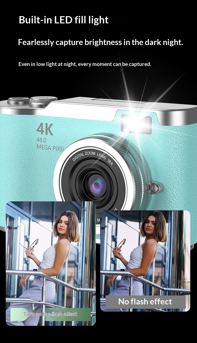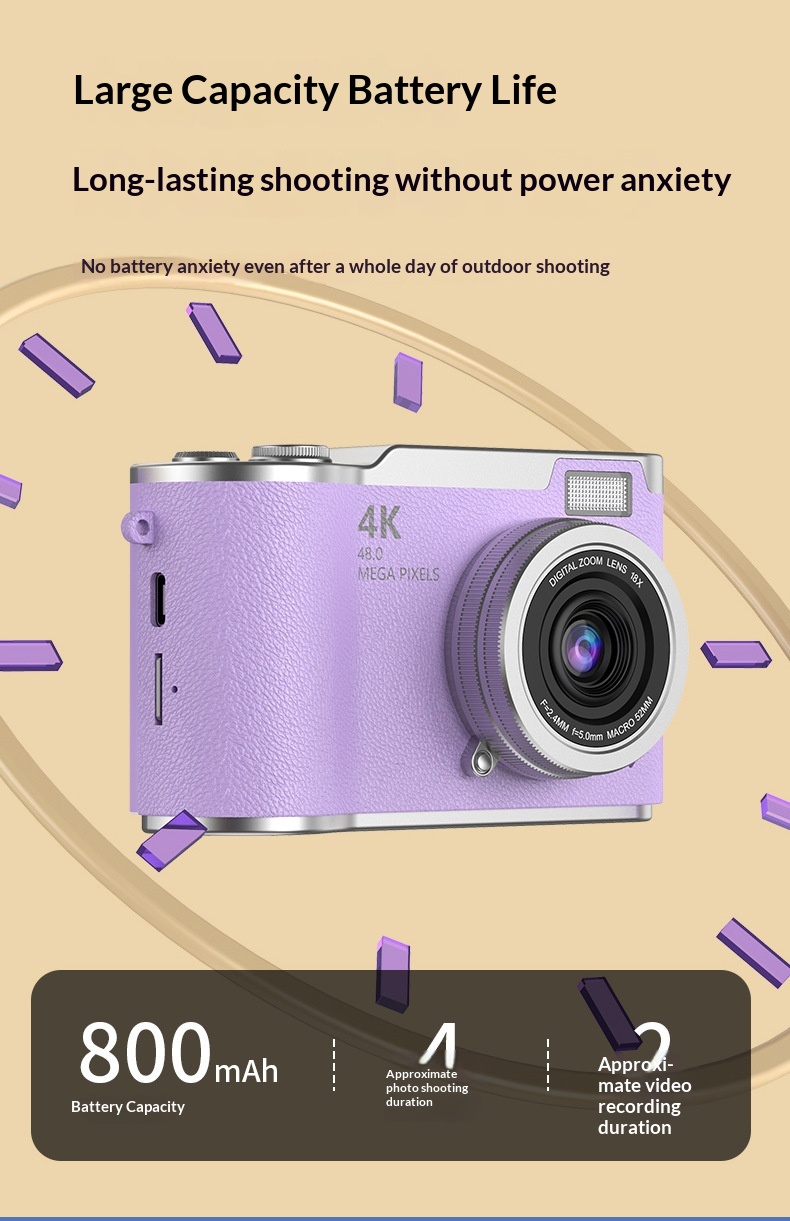 4K Digital Camera With High Pixel Count And HD Quality Perfect For Selfies And Easy Photo Uploads To Your Phone